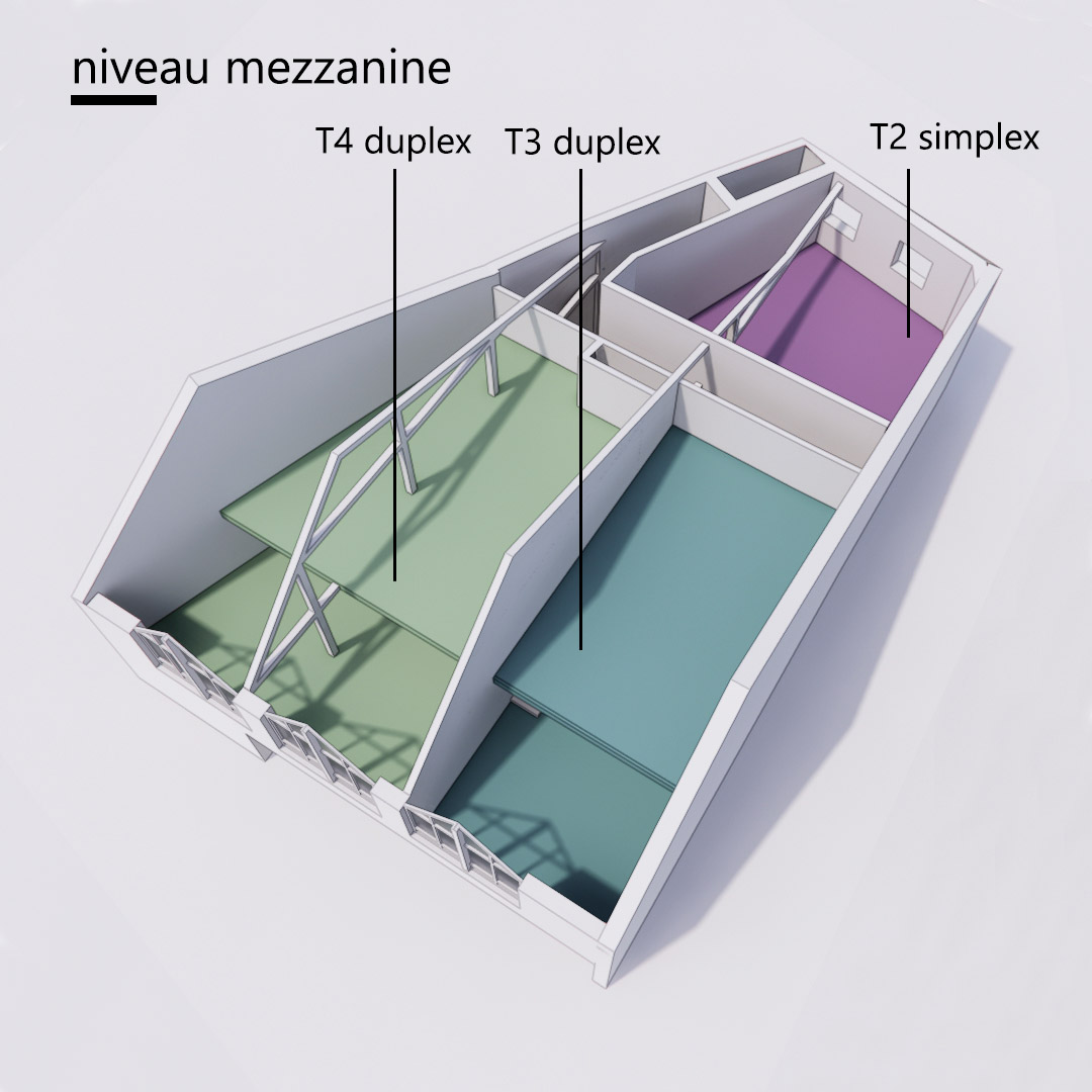 LDV - axonométrie, répartition des logements, niveau d'accès